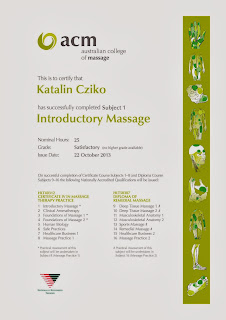 Szóval, jelenleg gyerekekre vigyázok itthon. El tudom képzelni, hogy akik ismernek, most nevetnek. Akik nem, azokkal maradjunk ennyiben. :) Nem részletezem, de nem ez álmaim melója, ezért már egy ideje nézelődtünk, hogy merre kéne továbbhaladni. Mostanra nem csak az ötlet és az elhatározás született meg, de meg is tettem az első lépést. Elkezdtem egy masszázstanfolyamot. Szeretek masszírozni, és ez itt hiányszakma. Ismerőseim tudják, milyen remekül tudok évekre előre tervezni, úgyhogy már a saját masszázs szalonomat is látom magam előtt. :) Optimizmusért sose kellett a szomszédba mennem. Szóval hétfőn és kedden volt az első két nap, és folytatom tovább. Már van egy kezdő oklevelem, nemsoká kezdem a certificate IV-et, és meg sem állok a diplomáig. Ha már valamit csinálunk, csináljuk jól. :)